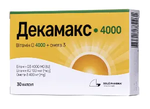 1 капсула содержит: активные ингредиенты: витамин D3 (холекальциферол) – 100 мкг (µg) [4000 МЕ (IU)], витамин К2 (менахинон, МК-7) – 100 мкг (µg), рыбий жир (содержащий омега- 3 полиненасыщенные жирные кислоты) – 400 мг (mg) [в т.ч. эйкозапентаеновая кислота – 72 мг (mg), докозагексаеновая кислота – 48 мг (mg)];